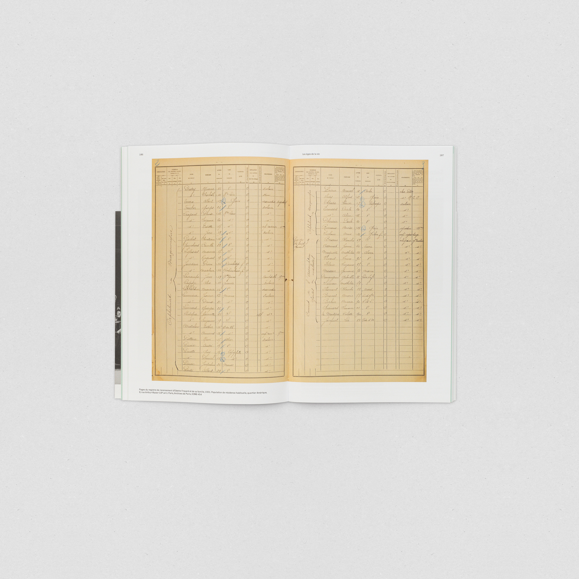 À la différence des autres communes françaises, Paris n’a pas recensé sa population avant 1926. L’exposition « Les gens de Paris » s’articule autour des trois premiers recensements parisiens (1926, 1931 et 1936) conservés aux Archives de Paris. Ces registres permettent la découverte de la population parisienne des années 1930. Tenant compte de sa spécificité, l’exposition analyse ces documents sous quatre angles : des lieux de naissance et nationalités aux professions exercées, en passant par les situations familiales et la répartition au sein de chaque quartier de la ville.