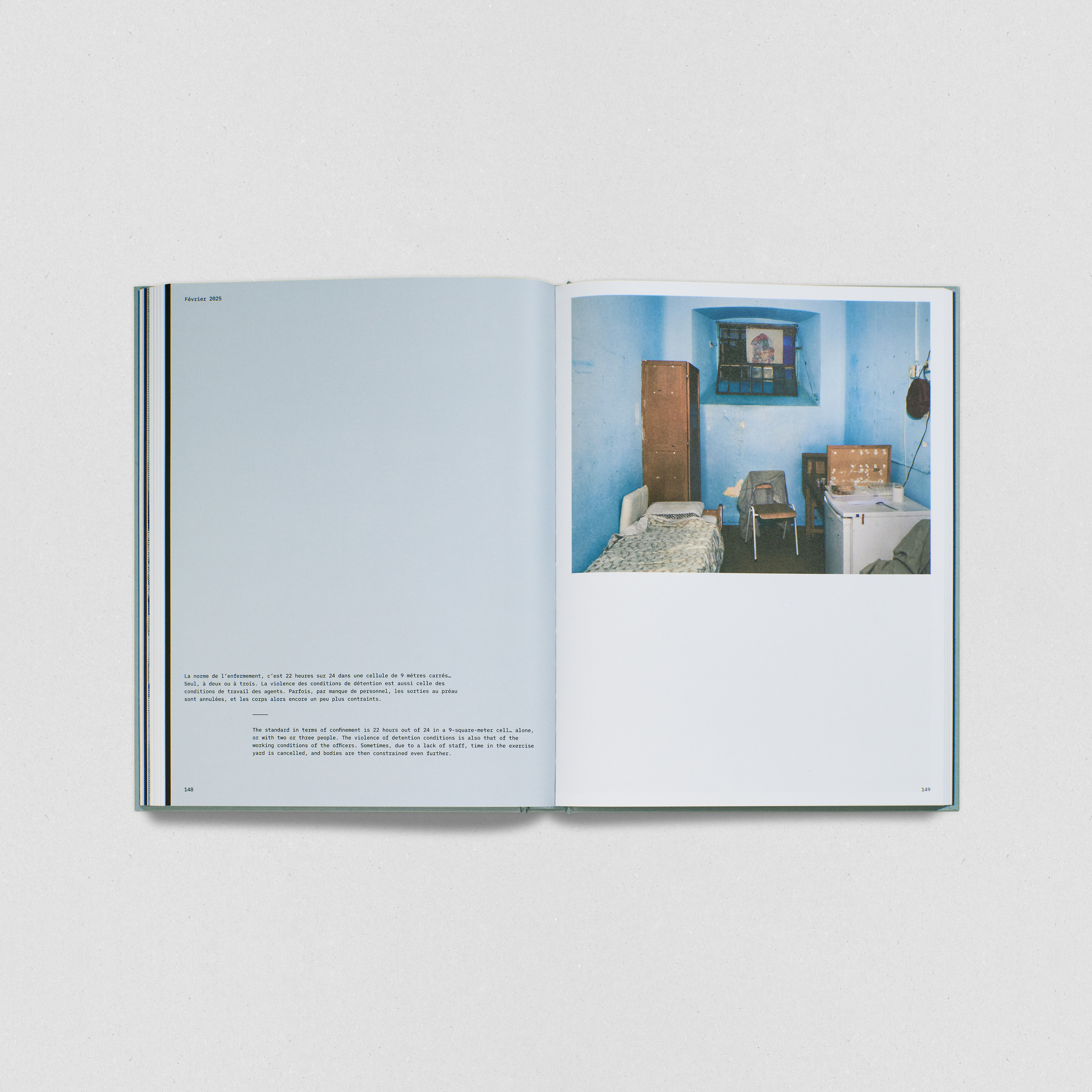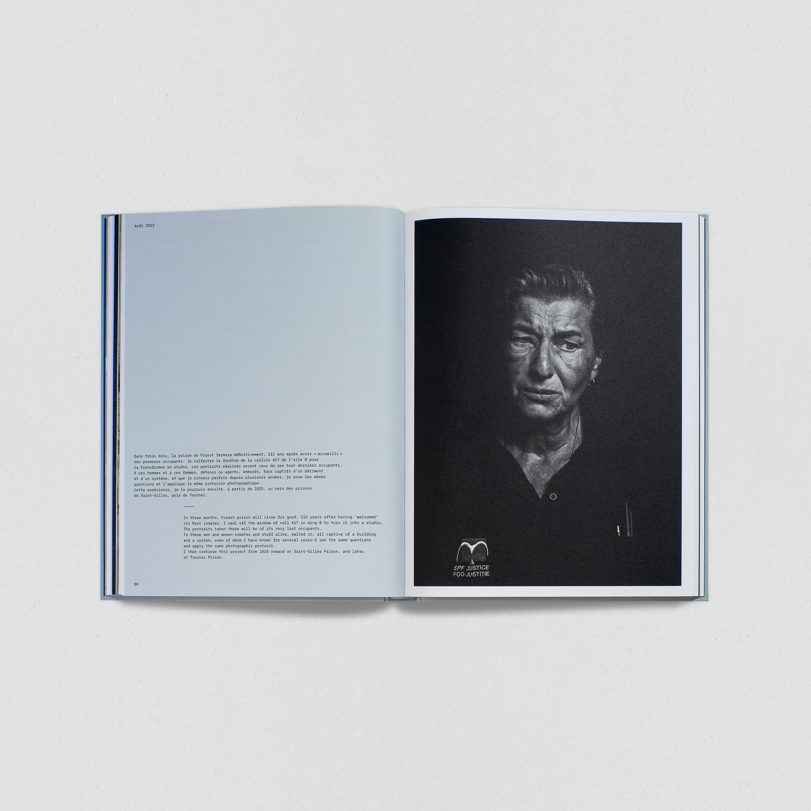 Fruit de dix ans d’enquête et d’immersion au cœur des prisons de Saint-Gilles, Forest et Tournai, l’ouvrage met en regard textes, travail photographique contemporain et archives anthropométriques inédites du début du XXe siècle. En explorant plus d’un siècle d’enfermement, ce projet documente les lieux, les corps et objets qui peuplent l’univers carcéral. Entre travail documentaire, témoignage social et création, cet ouvrage souligne l’urgence de transformer un système pénitentiaire en déliquescence.